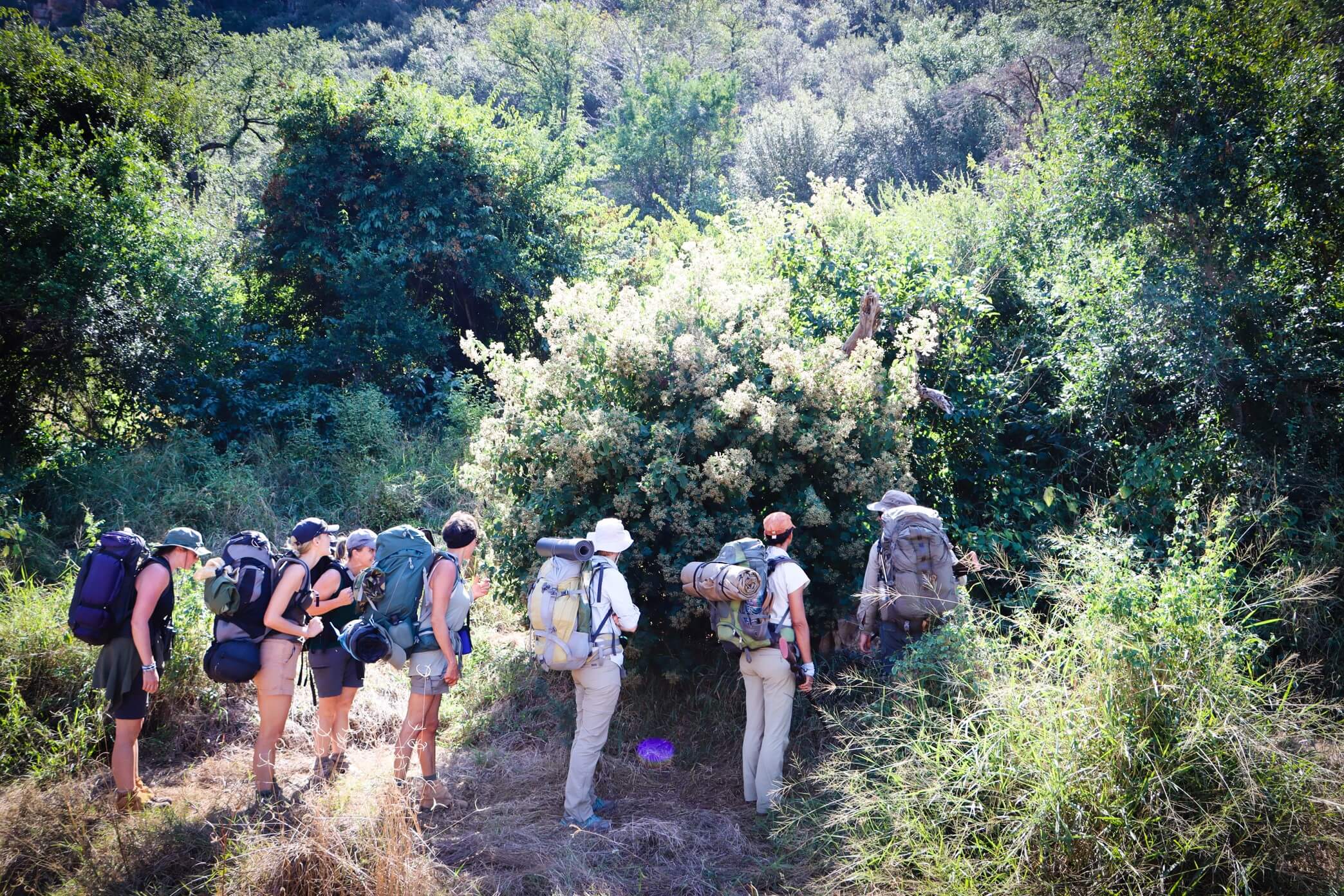 Lowveld Trails Company’s guided backpack trails take place across wild, exclusive properties in the Greater Kruger National Park and Makuya Nature Reserve. Groups generally set their own pace and explore according to their interests and capabilities, for between four and seven days. There are no demarcated campsites or routes and each night is spent under the stars (no tents) with participants sharing ‘night watch’. The trails are restricted to group bookings which may include up to eight participants.