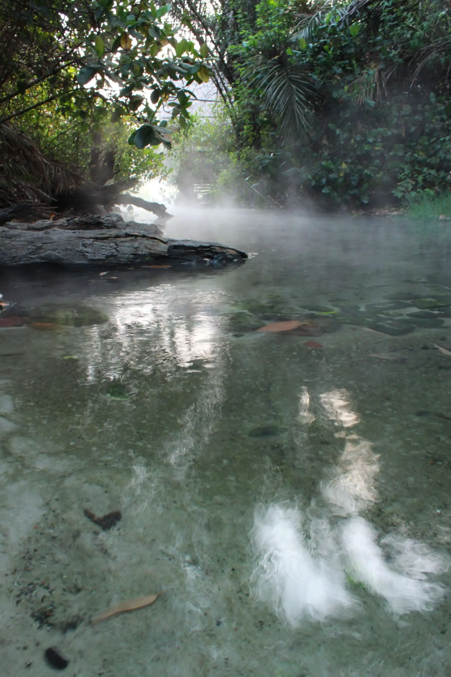 Slowly the night sounds begin to register; crickets, an African wood owl and the constant whisper of the Manshya River just a hundred metres away. It’s nearly 10pm. I shift around a little, feeling eddies of heat move with me. Eventually emerging from my watery trance, I reach for my towel. Mist curls around my body in ethereal wisps. I shiver a little and head for my tent, leaving the hot springs to sigh into the moonlight.