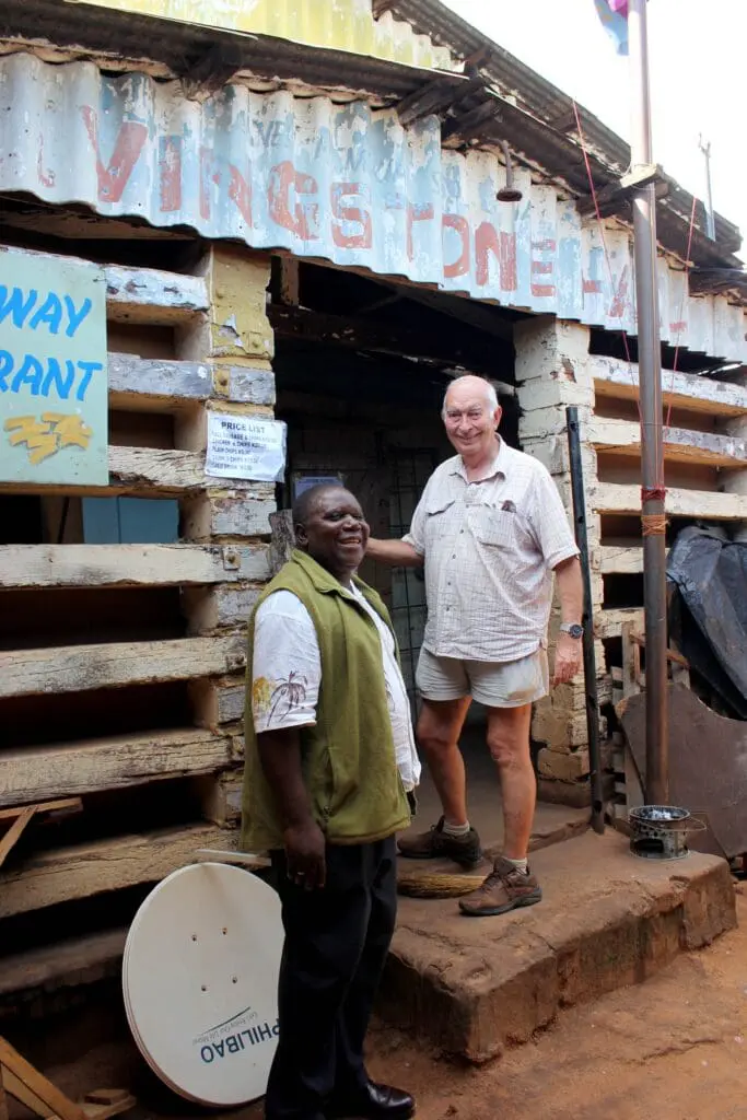 Later we wandered past the old cinema (circa 1931) and various other landmarks which are interspersed with the the hustle and bustle of modern Zambian life. We even found the old Scout Hall, possibly built from railway sleepers from the Mulobezi Sawmill further up the railway line. The hall is surrounded by an informal market now, where you can buy anything from kapenta (small dried fish) to hair braids. I bought some of the beautifully patterned wax-printed Chitenge fabric that Zambian women wear and we chatted to David Kwalela who now runs a school in the hall where my father spent may happy hours as a cub scout. Eneless Mwanza is one of his students, and hopes to get a job in what is now the town’s primary industry; tourism; which even in a newspaper article from 1907, was lauded as the future of the town.