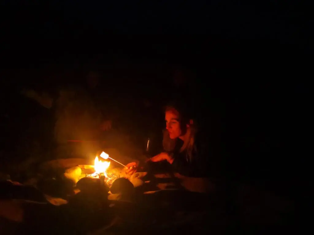 The lion roared again. To my left were the seven sleeping shapes of women I had only just met. And now I was between them and the lion. My very human heart was filled with a sublime fear. Shaking, I shone my torch once more. I put a small piece of hardwood onto the fire. I sat down. There were 45 minutes of my hour-long shift to go. I’d drawn an earlier straw the night before and had the sounds of a settling camp to calm my nerves. There’d been a universe of stars. Nothing had roared.