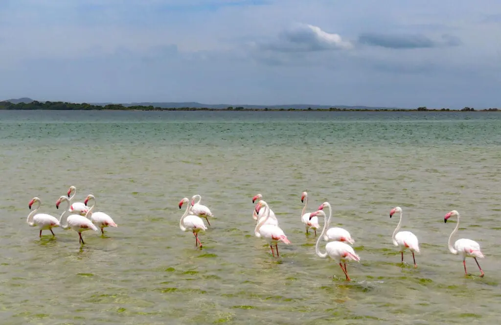 It was a lot to take in, and there was more. Emerging into the second lake, I noticed a blush on the water. Flamingos. Then, we drifted near the weathered silver oak poles of fish traps as dozens of kingfish darted and spun through the water. Eugene laughed: “I don’t have to explain these; the fish are showing you.” These traps have operated for 800 years, their precise geometry aligned to the currents, tides, and the habits of fish that breed in the estuary but live in the sea. The poles create a labyrinthine pathway, leading the fish into a central holding area known as the “boma.” The fishers scoop out or spear the fish they need.